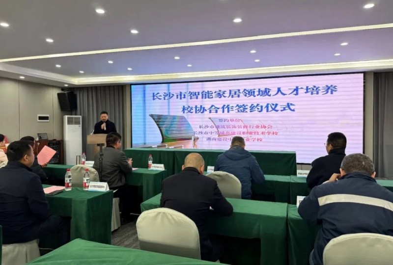 (長(zhǎng)沙市建筑裝飾裝修行業(yè)協(xié)會(huì)、長(zhǎng)沙市中等城鄉(xiāng)建設(shè)職業(yè)技術(shù)學(xué)校、湖南建設(shè)中等職業(yè)學(xué)校,三方共同簽署《長(zhǎng)沙市智能家居領(lǐng)域人才培養(yǎng)校協(xié)合作協(xié)議》)