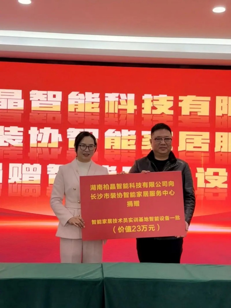 作為合作的有力支持,現(xiàn)場(chǎng)還舉行了智能家居設(shè)備捐贈(zèng)儀式。湖南柏晶智能科技有限公司董事長(zhǎng)鐘鳴峰向協(xié)會(huì)智能家居服務(wù)中心捐贈(zèng)了一批先進(jìn)的智能家居實(shí)訓(xùn)設(shè)備,由協(xié)會(huì)秘書(shū)長(zhǎng)羅育梅代表接收。這批設(shè)備將直接用于共建的實(shí)訓(xùn)基地,為人才培養(yǎng)提供貼近行業(yè)實(shí)際的硬件保障。